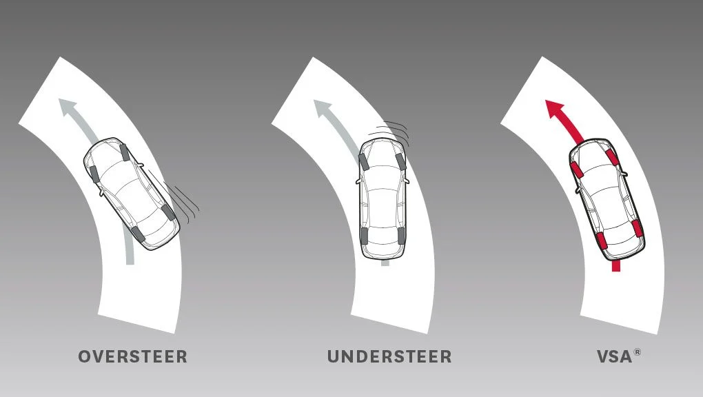 Vehicle Stability Assist with Traction Control is designed to sense and help correct oversteer and understeer scenarios to enhance handling and cornering stability, while Traction Control is designed to minimize wheel spin when accelerating on slippery surfaces, helping to inspire greater driver confidence.